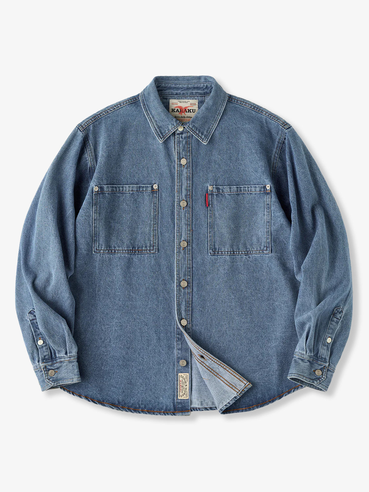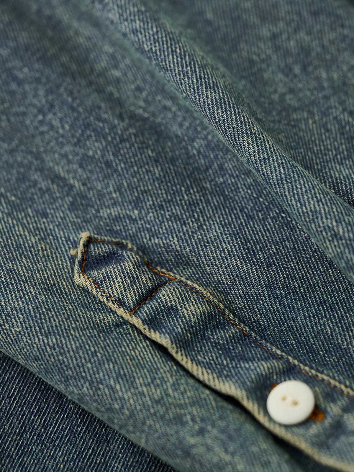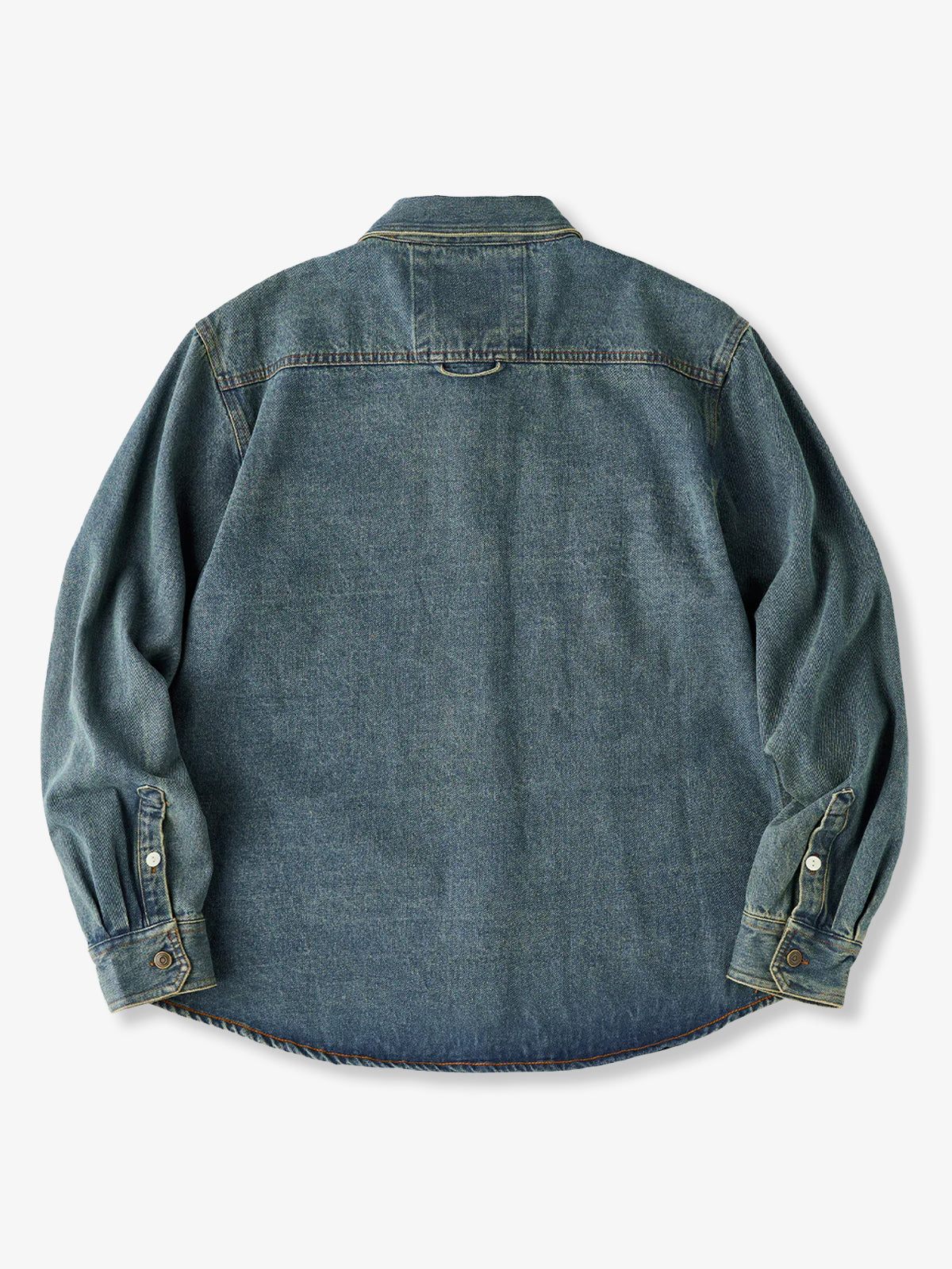 A classic American-style work shirt that combines rugged charm and practicality. It is washed to express the texture of years of wear, giving it a vintage glow. Moderately thick cotton is breathable and durable, and is comfortable to wear no matter what season. The classic pockets on the front add practicality. The silhouette is moderately spacious, It supports a variety of looks. The color is available in two colors, and it can be worn regardless of the scene.