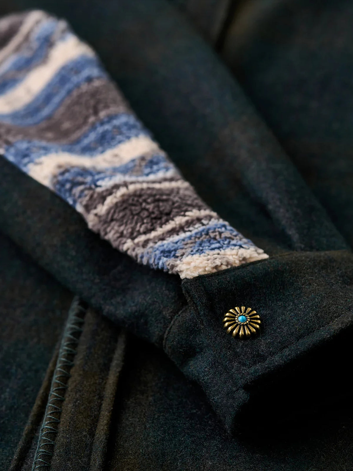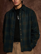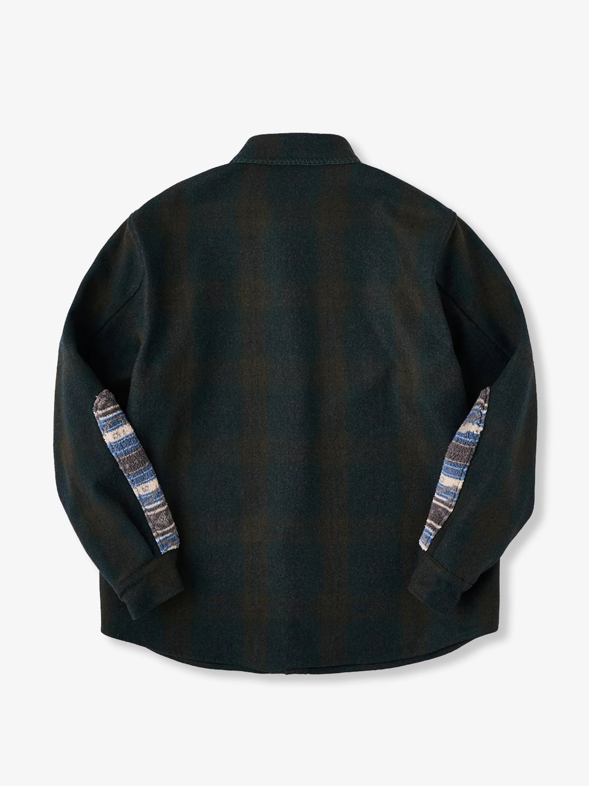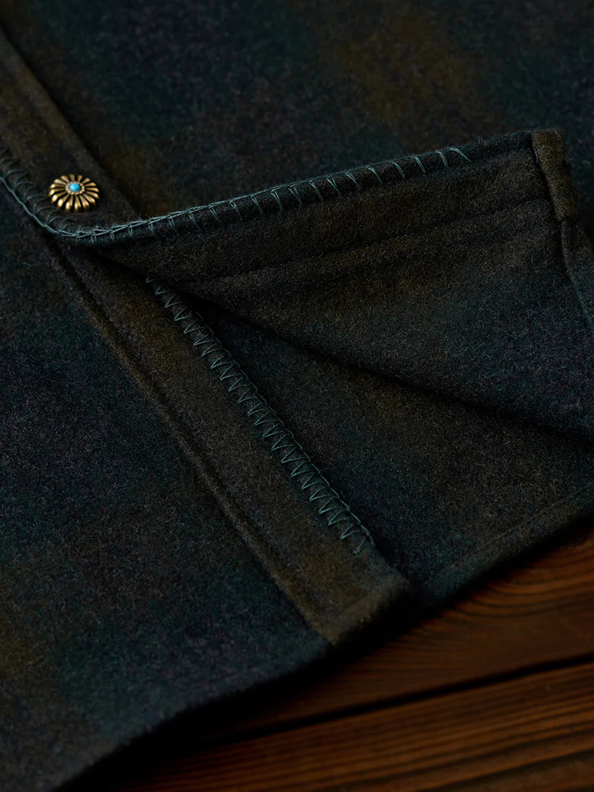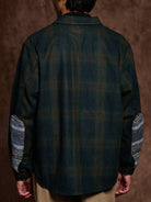 Concho Button Ethnic Pattern Patch Tweed Wool Plaid Shirt