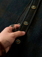 A western shirt that blends tradition and modernity. The brushed fabric is combined with ethnic tweed patches to create a unique design that adds a visual highlight. The buttons are the cornerstone of the shirt, and they are custom concho buttons that add luxury and uniqueness to the details. This is a piece that can be worn casually and smartly, and can be used in a wide range of occasions from daily life to special occasions.