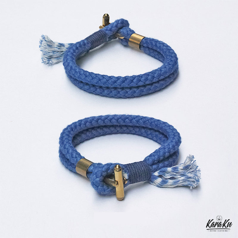 This simple design bracelet, made of precision linen and indigo dye, showcases the unique texture of plant-based dye. Each handmade piece exudes warmth, featuring a brass hook for easy opening and closing. The natural indigo dye enhances its vintage vibe. Perfect for casual outings or adding a touch of charm to your daily wear, this bracelet balances suppleness with durability.