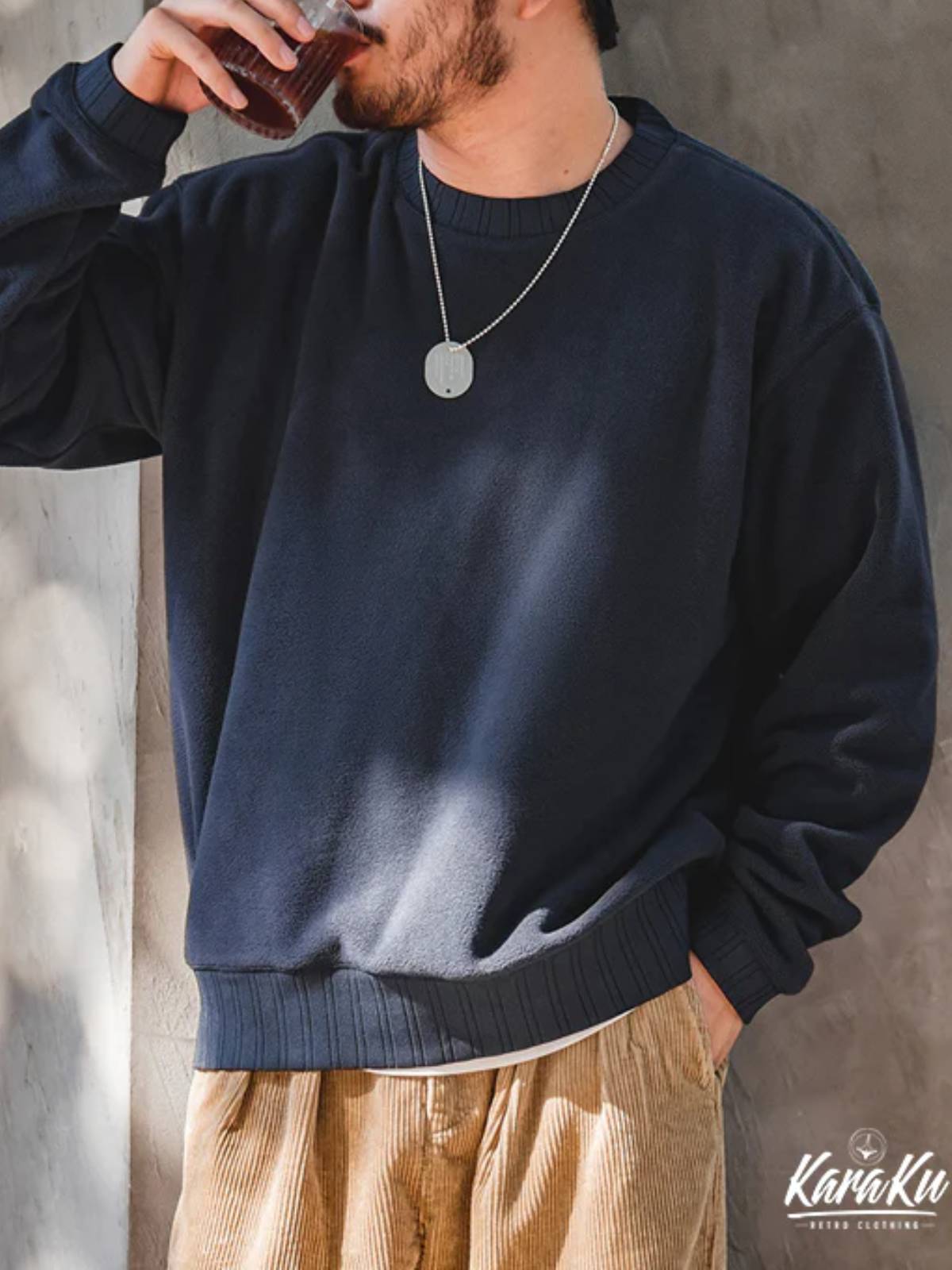 This sweatshirt features a simple crewneck design with ribbed cuffs, collar, and hem for a sporty touch. Its relaxed fit with off-shoulders adds a trendy feel. The thumbhole sleeves prevent the sleeves from riding up, adding functionality. Made from lightweight, breathable polar fleece, it offers warmth and comfort. Ideal for layering with denim, chinos, or wide pants, perfect for fall and winter.