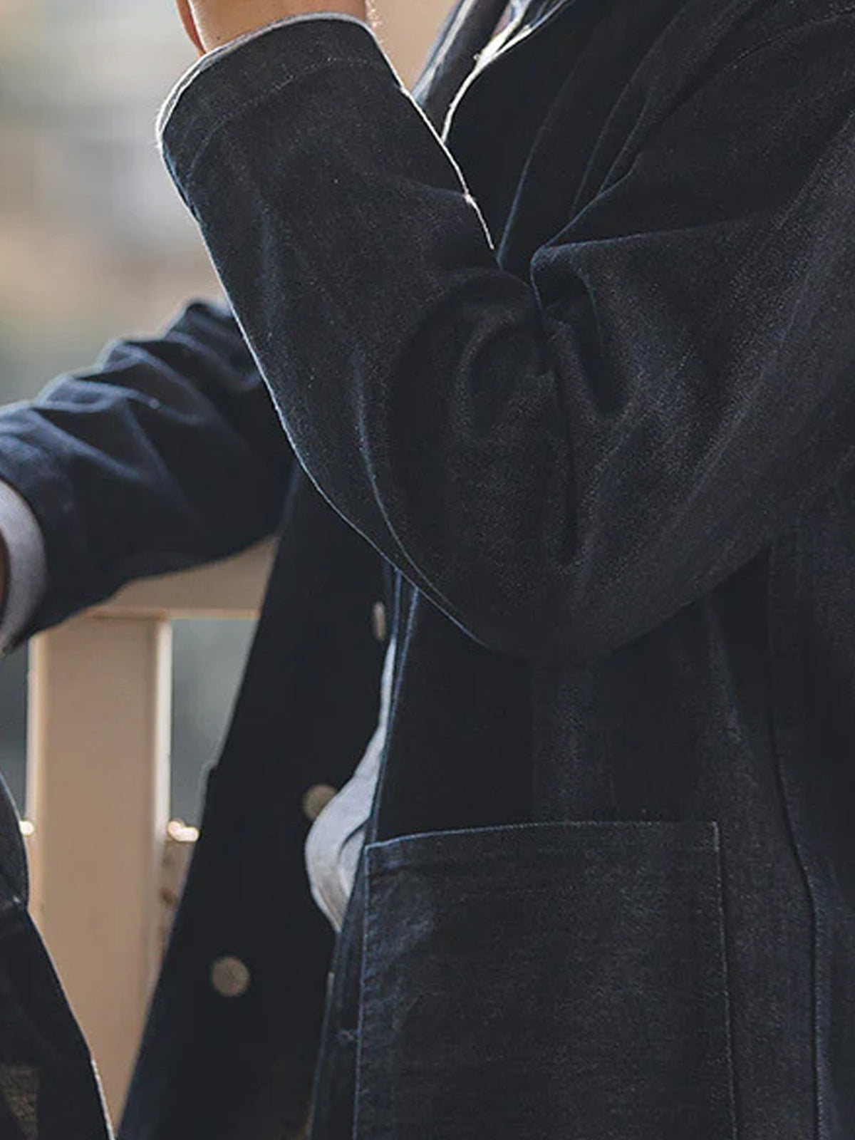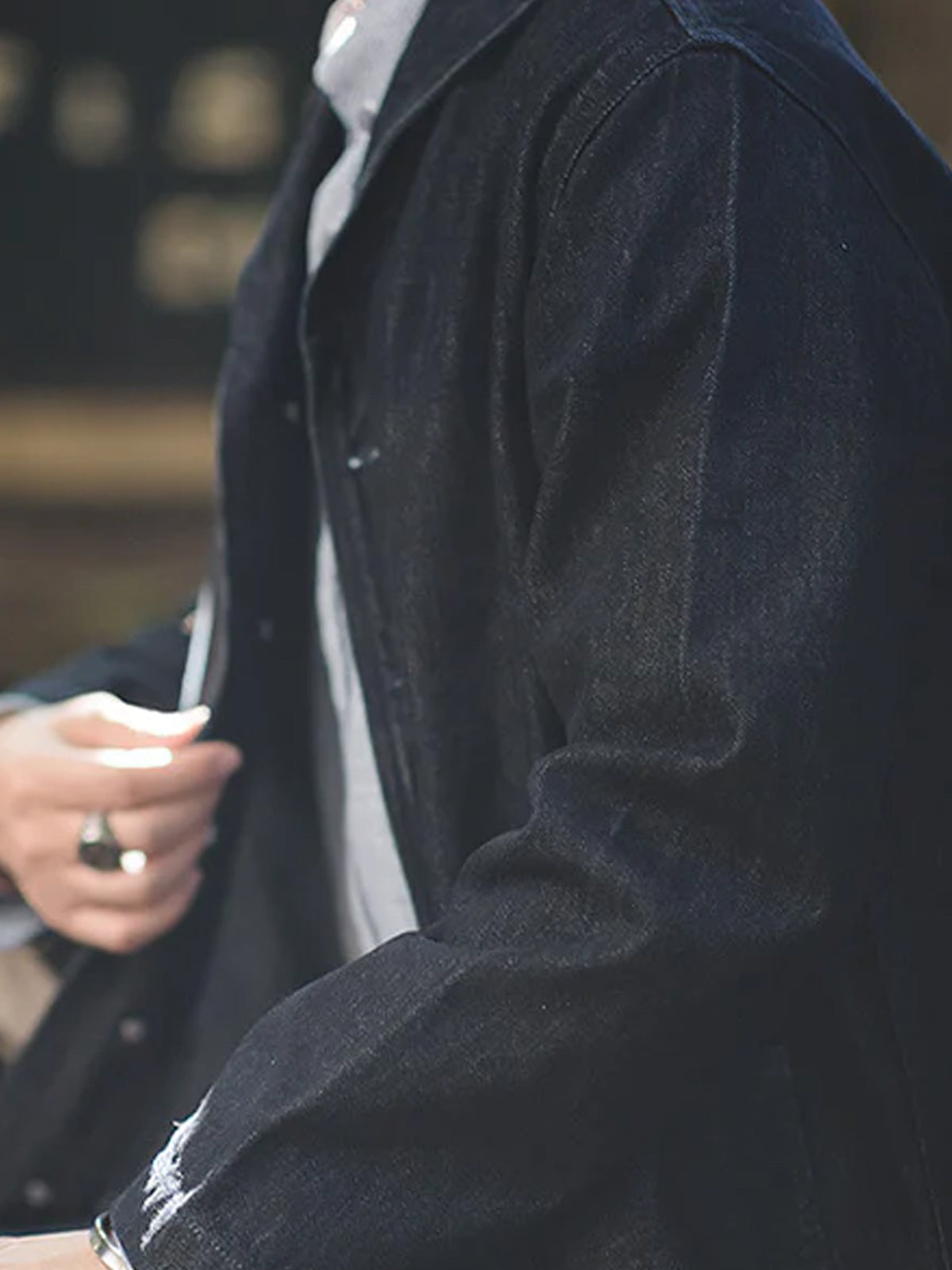 This vintage jacket take on the classic workwear combines a timeless American casual style with a sleek silhouette, exuding elegance and versatility. Made from durable yet comfortable 13.5oz denim, it softens over time while maintaining a vintage charm. Pair it with hoodies, tees, or flannel shirts for effortless casual or Americana-inspired looks.