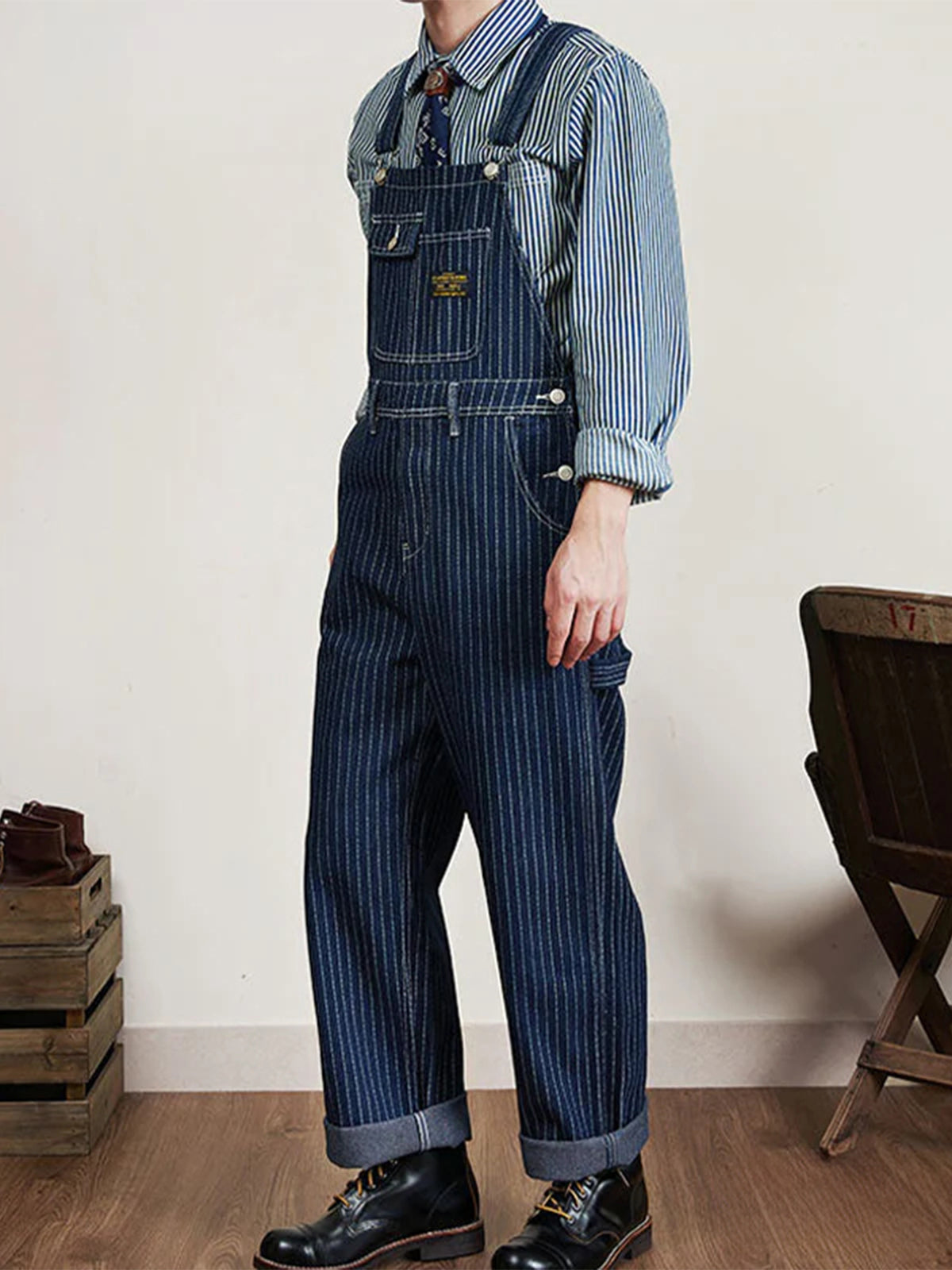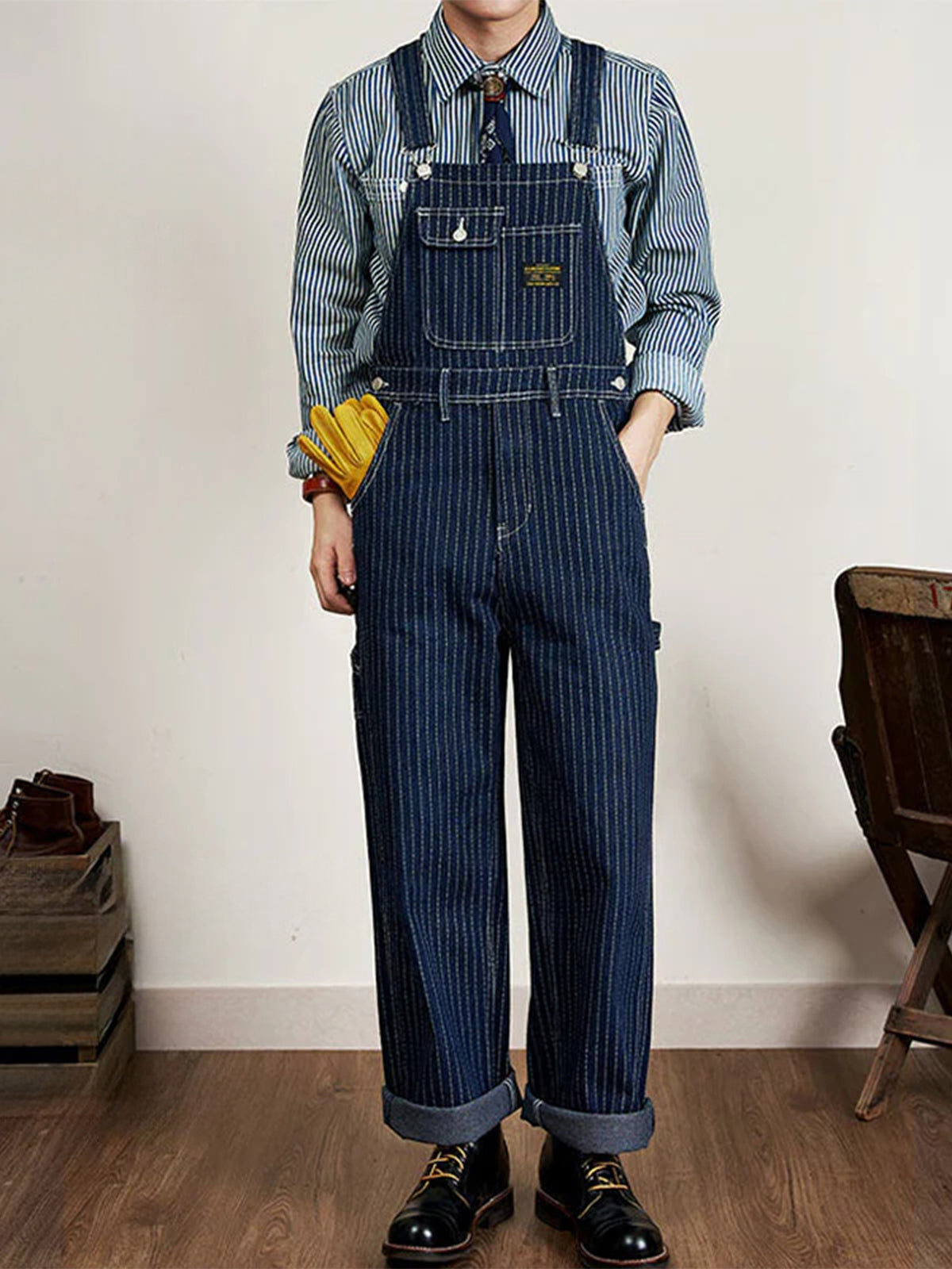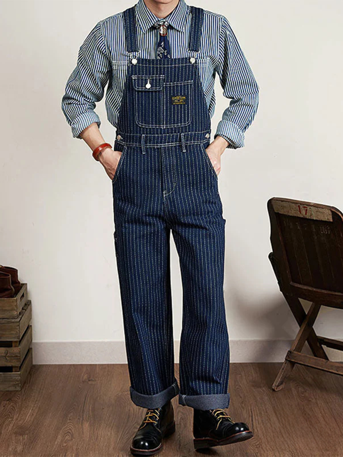 The Wabash Stripe Denim Overalls stand out with their detailed, vintage-inspired design, inspired by early 20th-century railroad worker uniforms. Crafted from durable cotton, these overalls offer excellent comfort and breathability, making them a versatile staple for year-round wear. Ideal for casual or streetwear looks, these overalls add a stylish, vintage twist to any outfit.