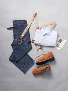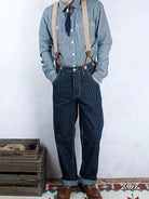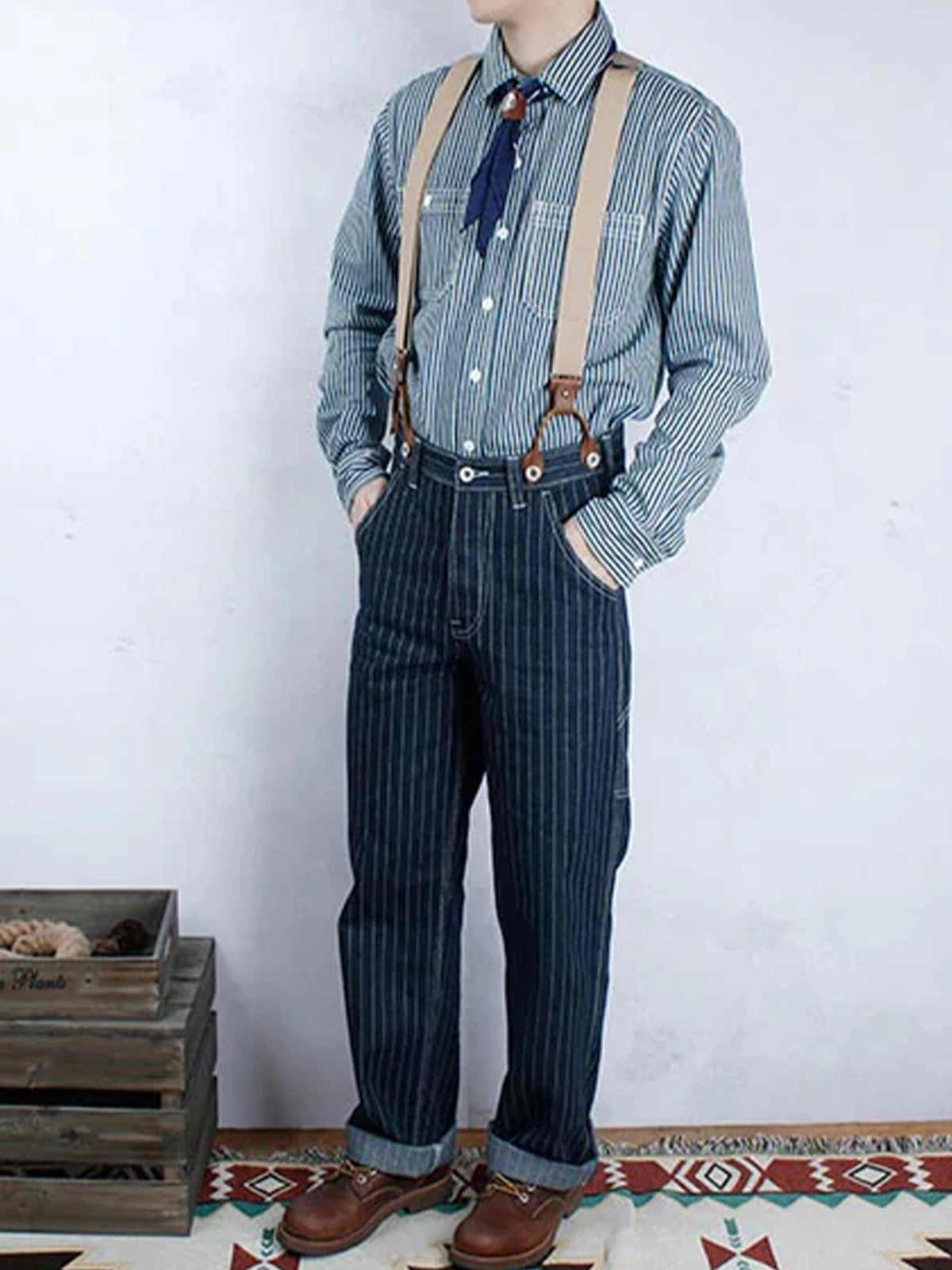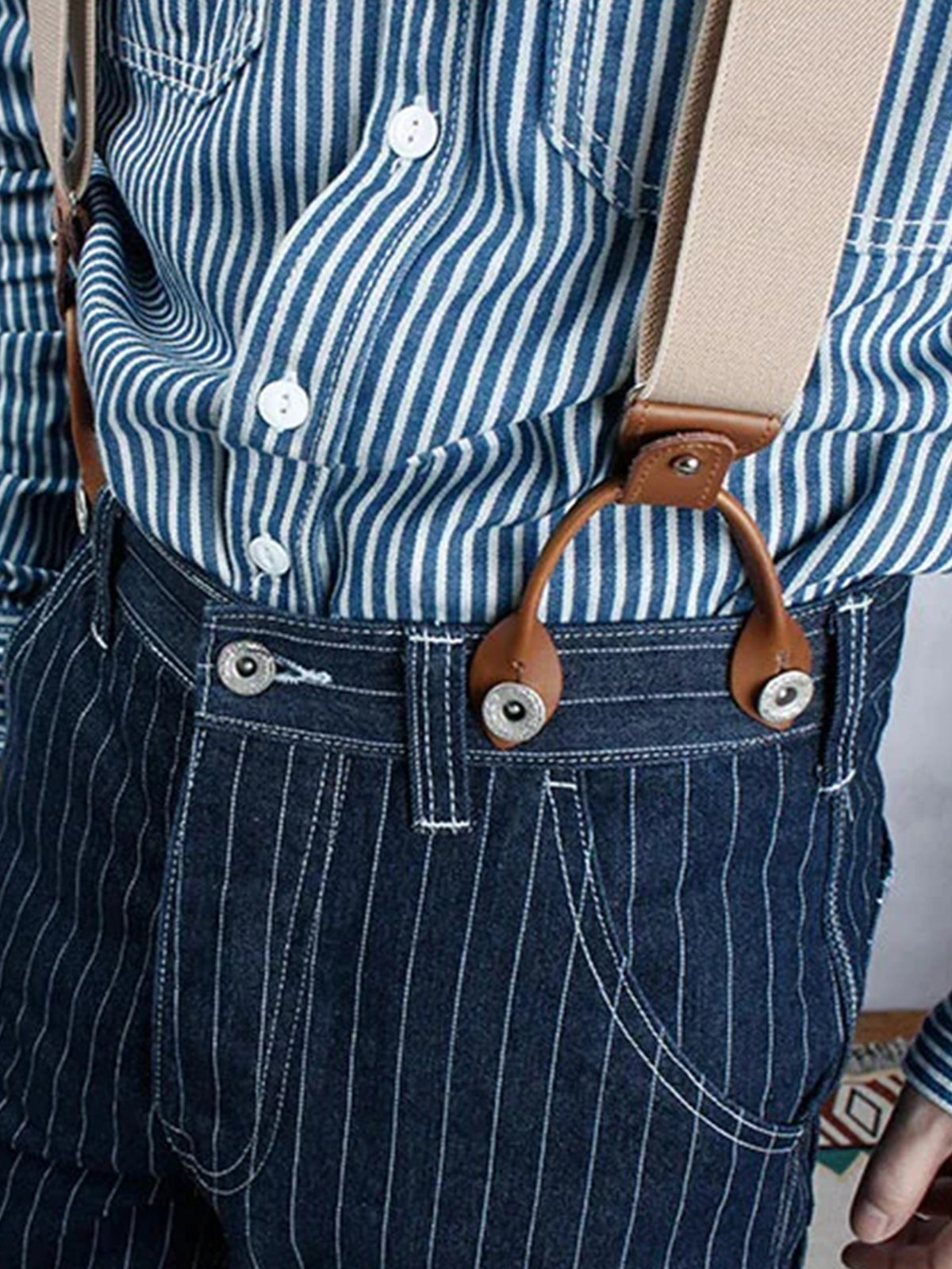 Inspired by classic menswear, these striped pants feature detachable suspenders, adding a refined yet playful touch to any look. The breathable cotton fabric ensures comfort and flexibility, perfect for active days or relaxed settings. Pair with T-shirts, knits, or hoodies for a versatile style that works year-round, from casual outings to outdoor adventures.