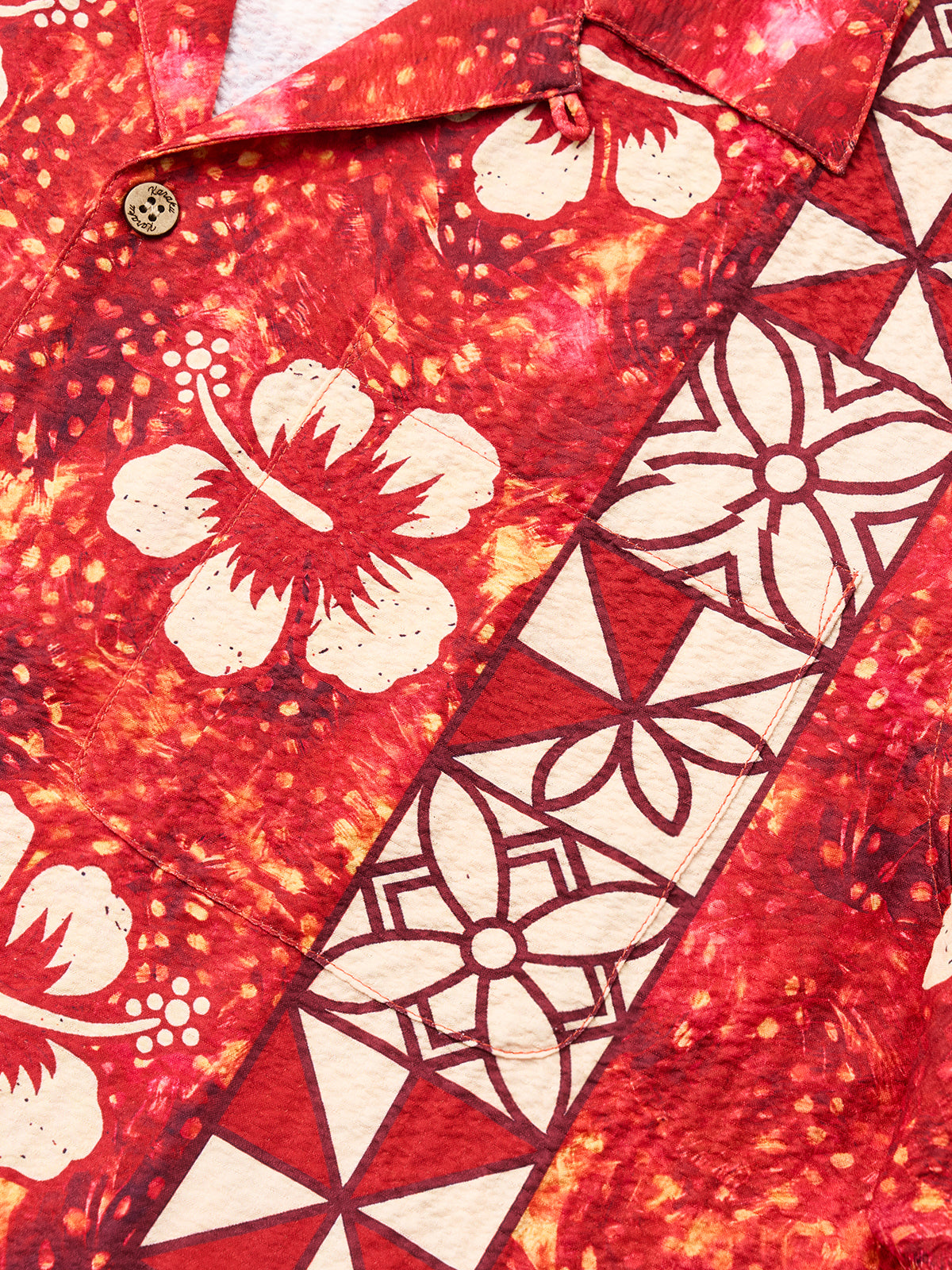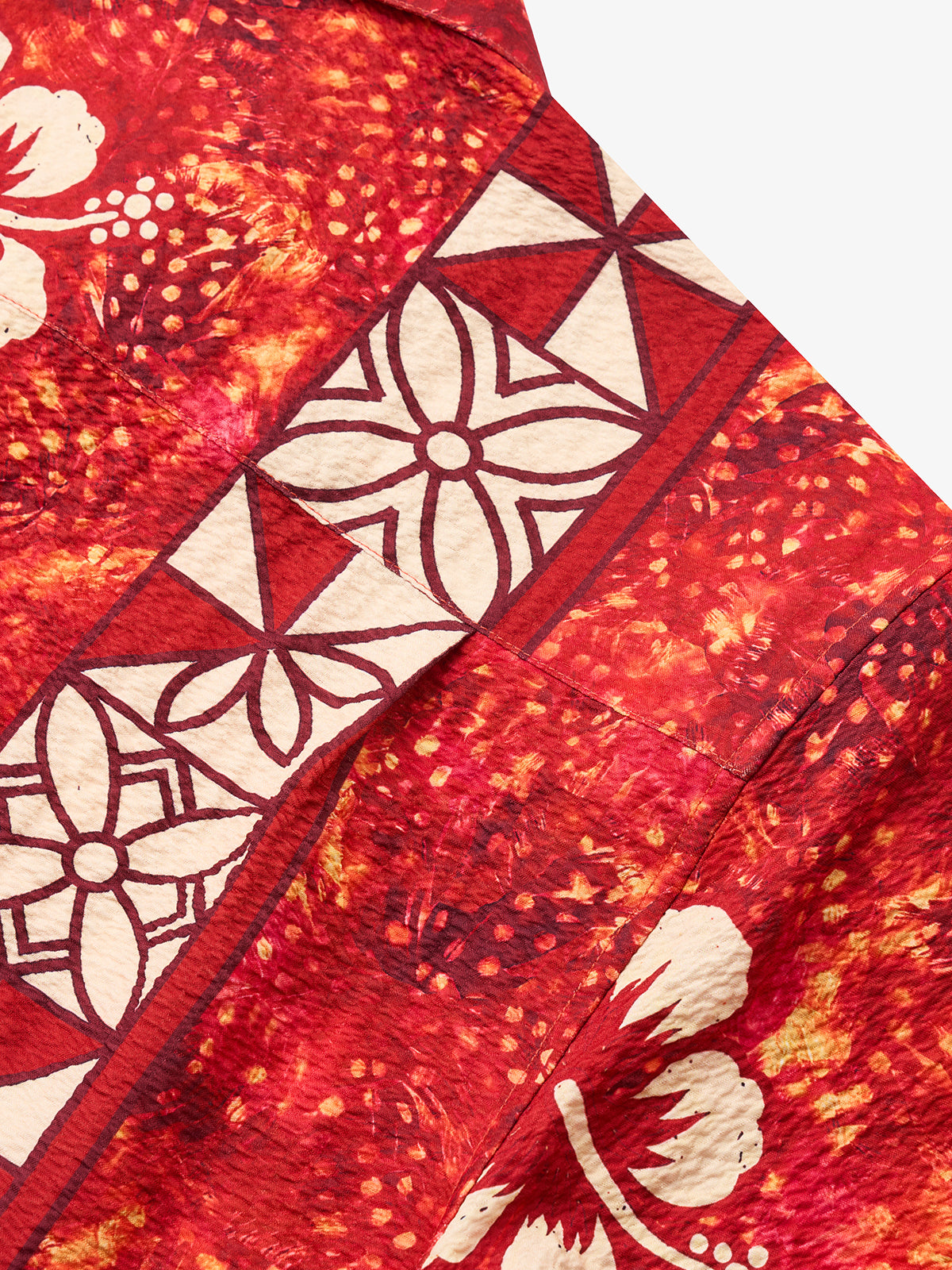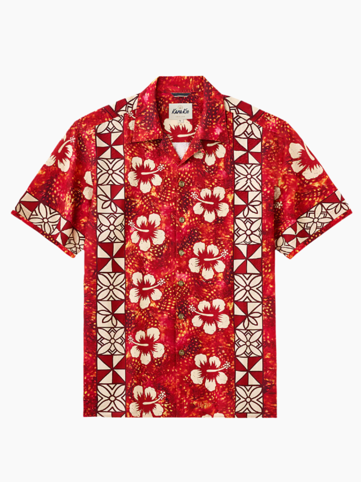 Inspired by Hawaiian tropical style, this shirt features a red base symbolizing summer's passion, with floral patterns that capture the essence of Hawaiian culture. The geometric border adds a modern twist, blending tradition with contemporary flair. Perfect for vacations, beach parties, or weekend gatherings, this shirt lets you embrace the vibrant spirit of Hawaii and stand out with unique style.
