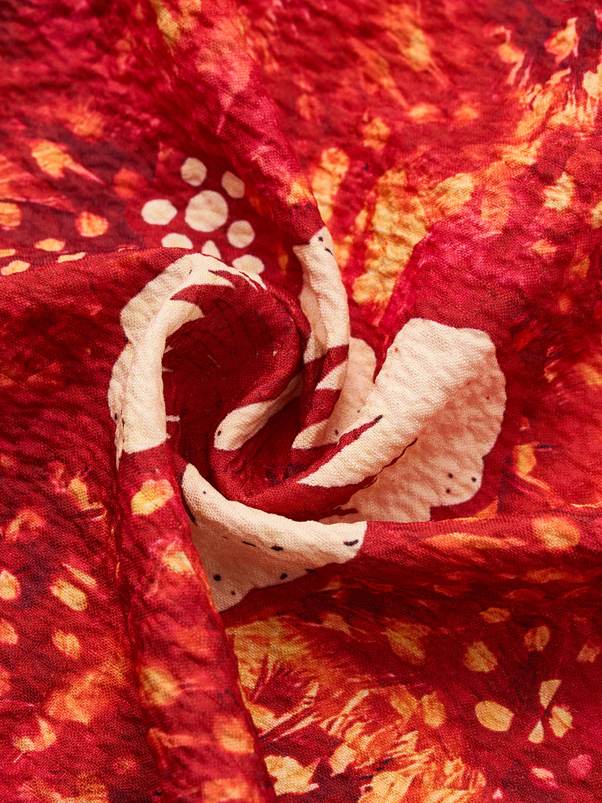 - Fabric Features: Its signature puckered texture, provides an eco-conscious and breathable choice that enhances cooling through improved air circulation.