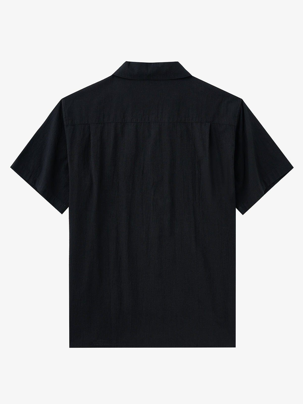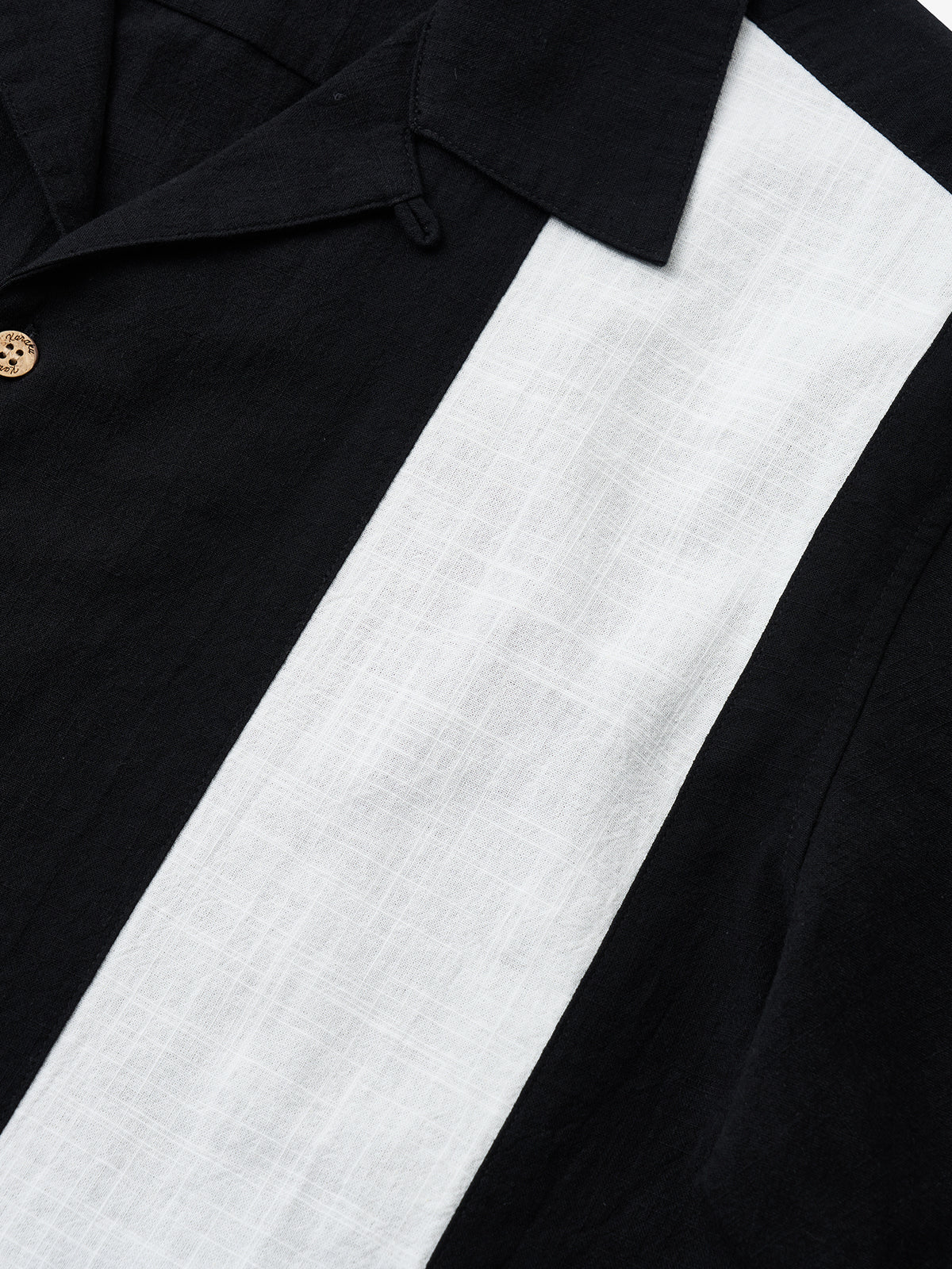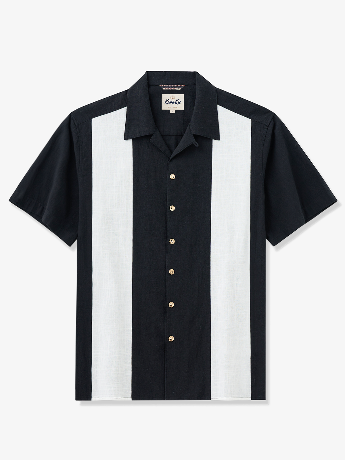This bowling shirt in black, red, and brown pays homage to the vibrant retro era. Its colorblocking echo the stylish flair of vintage bowling shirts, blending nostalgia with modern comfort. Crafted from breathable cotton, it provides a perfect balance of style and practicality. Ideal for themed restaurants, bowling alleys, and casual outings, this shirt adds a timeless touch to any look.