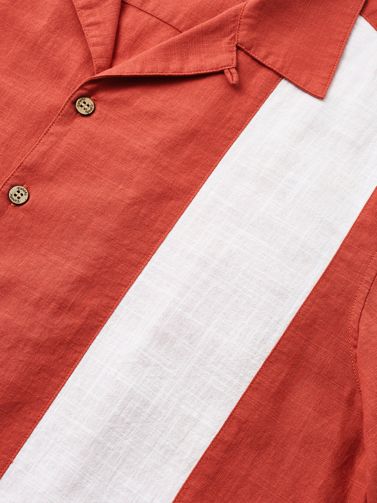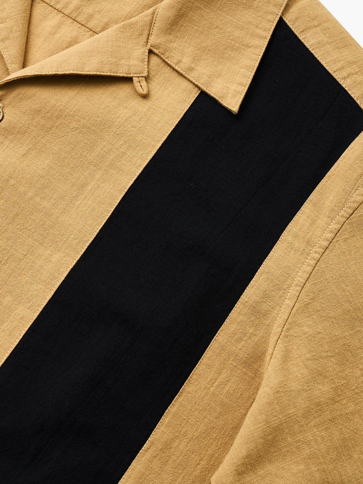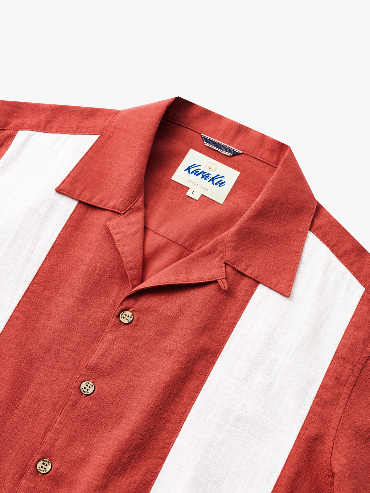 This bowling shirt in black, red, and brown pays homage to the vibrant retro era. Its colorblocking echo the stylish flair of vintage bowling shirts, blending nostalgia with modern comfort. Crafted from breathable cotton, it provides a perfect balance of style and practicality. Ideal for themed restaurants, bowling alleys, and casual outings, this shirt adds a timeless touch to any look.