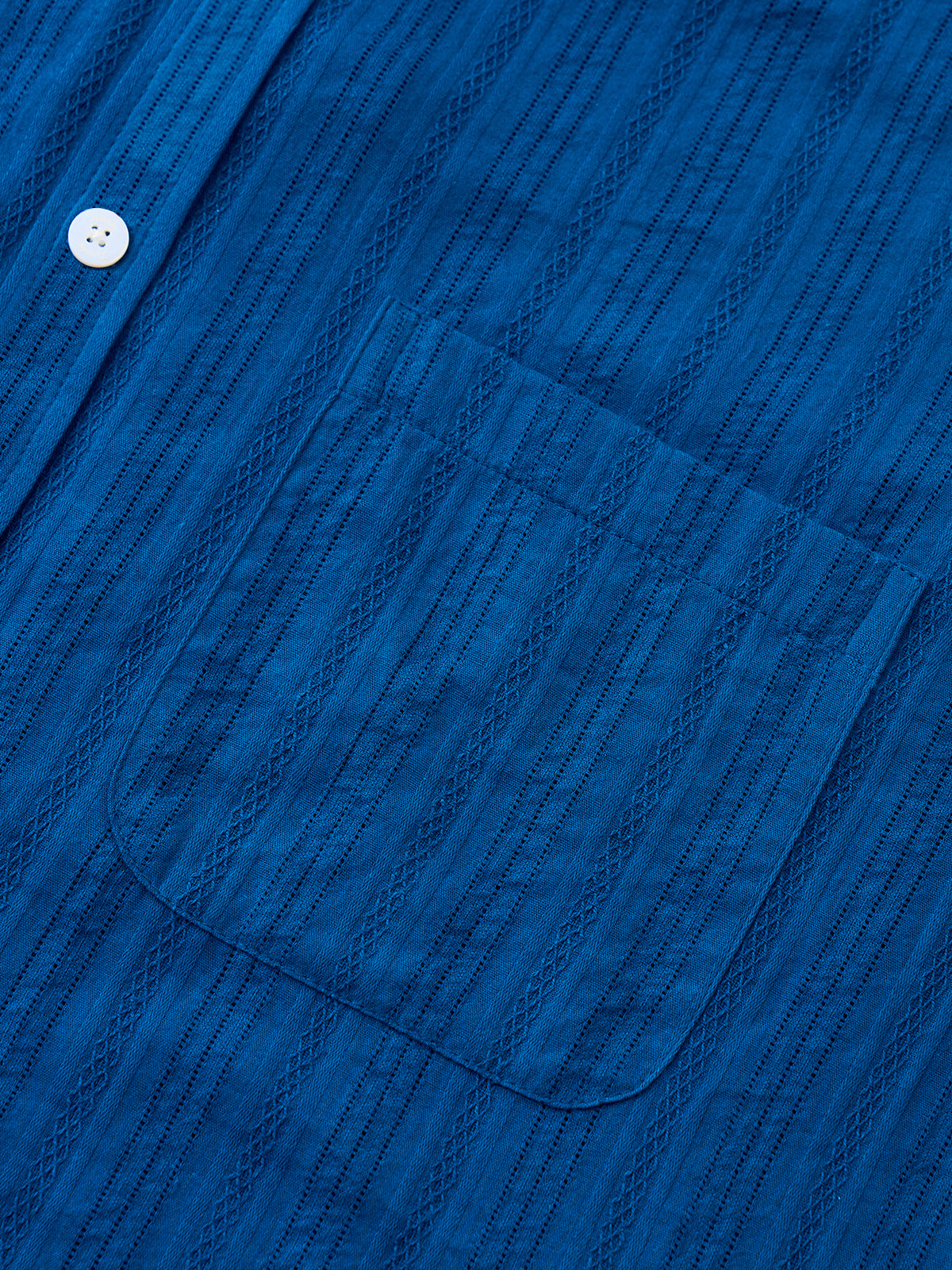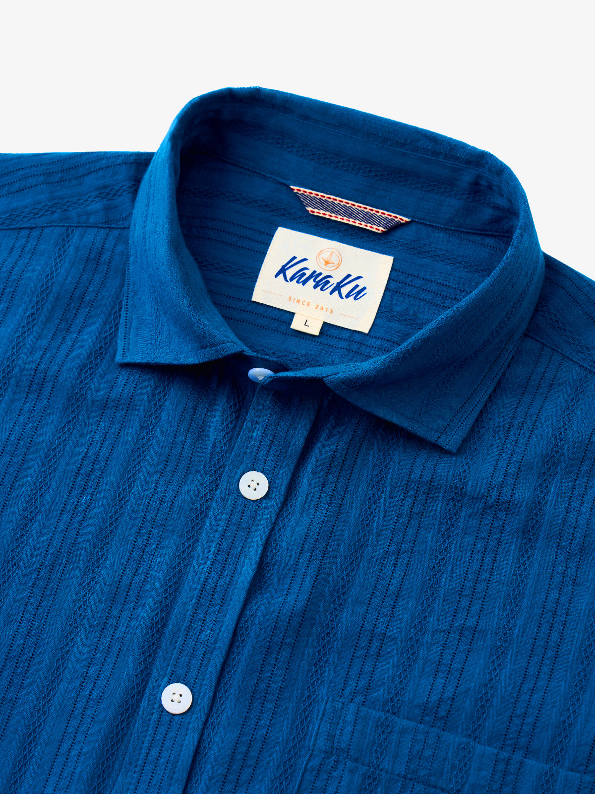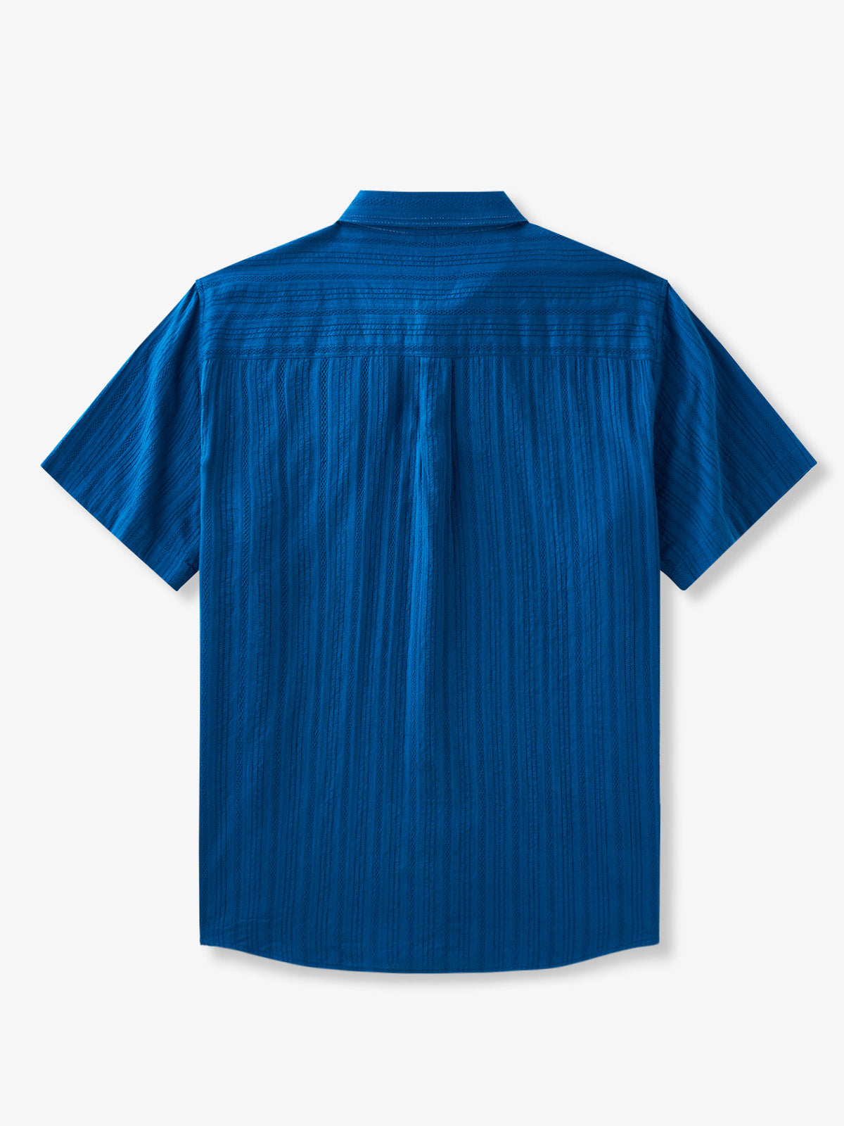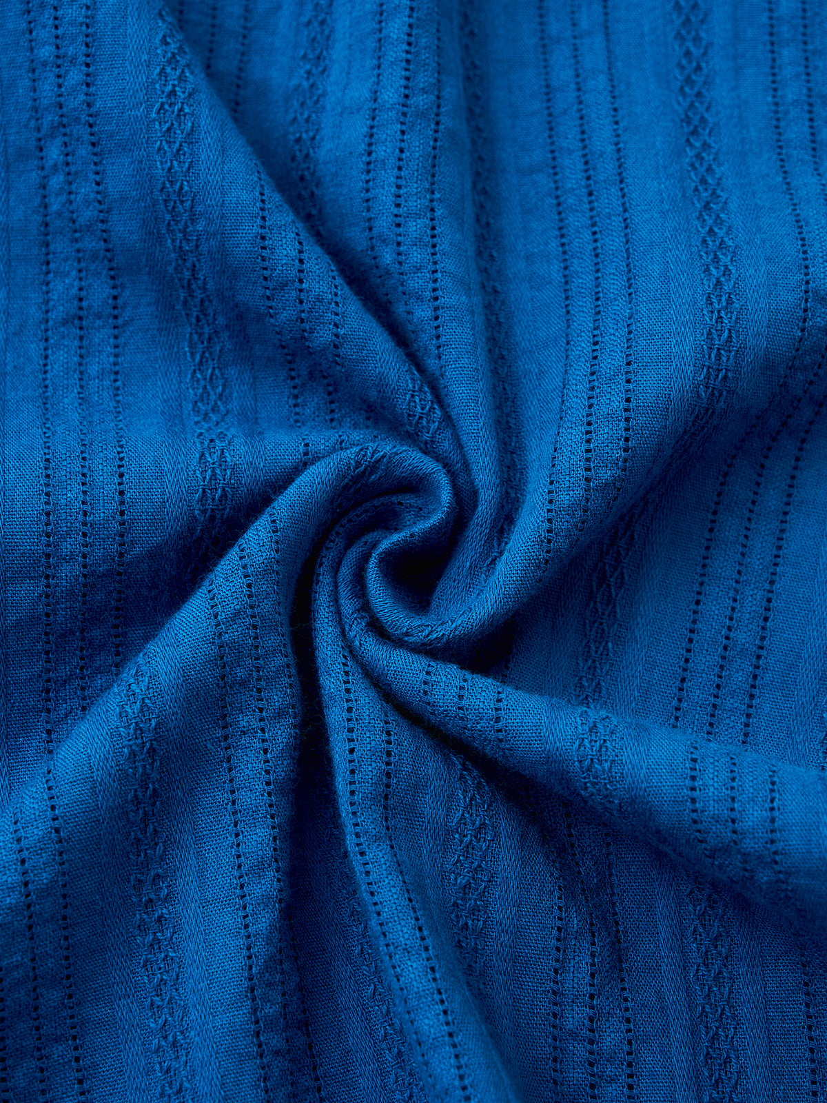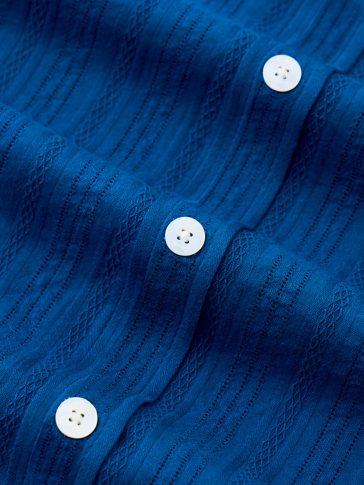 Inspired by timeless simplicity, this shirt features a rich blue hue with a unique hollow design, adding a touch of modern sophistication. Crafted from 100% premium cotton, it ensures exceptional comfort and breathability. Ideal for casual outings, summer gatherings, or relaxed office days, this shirt effortlessly combines style and practicality with an airy feel.