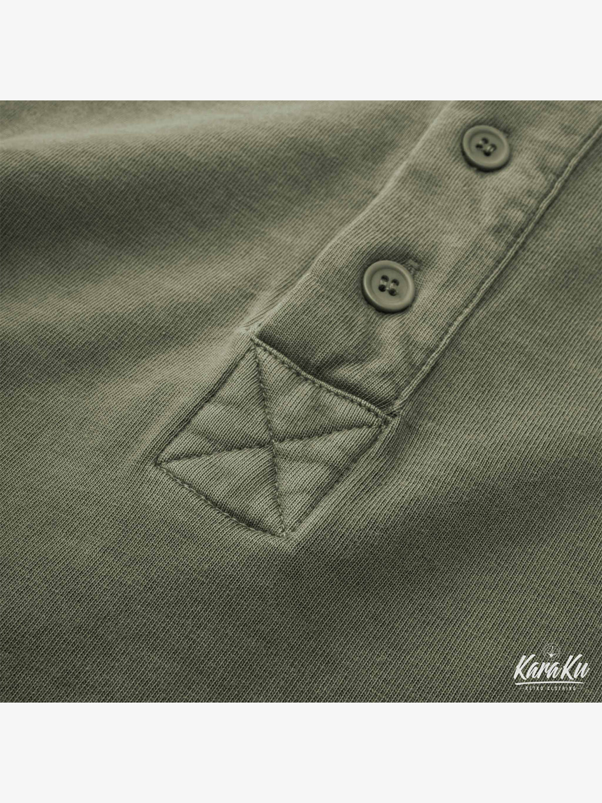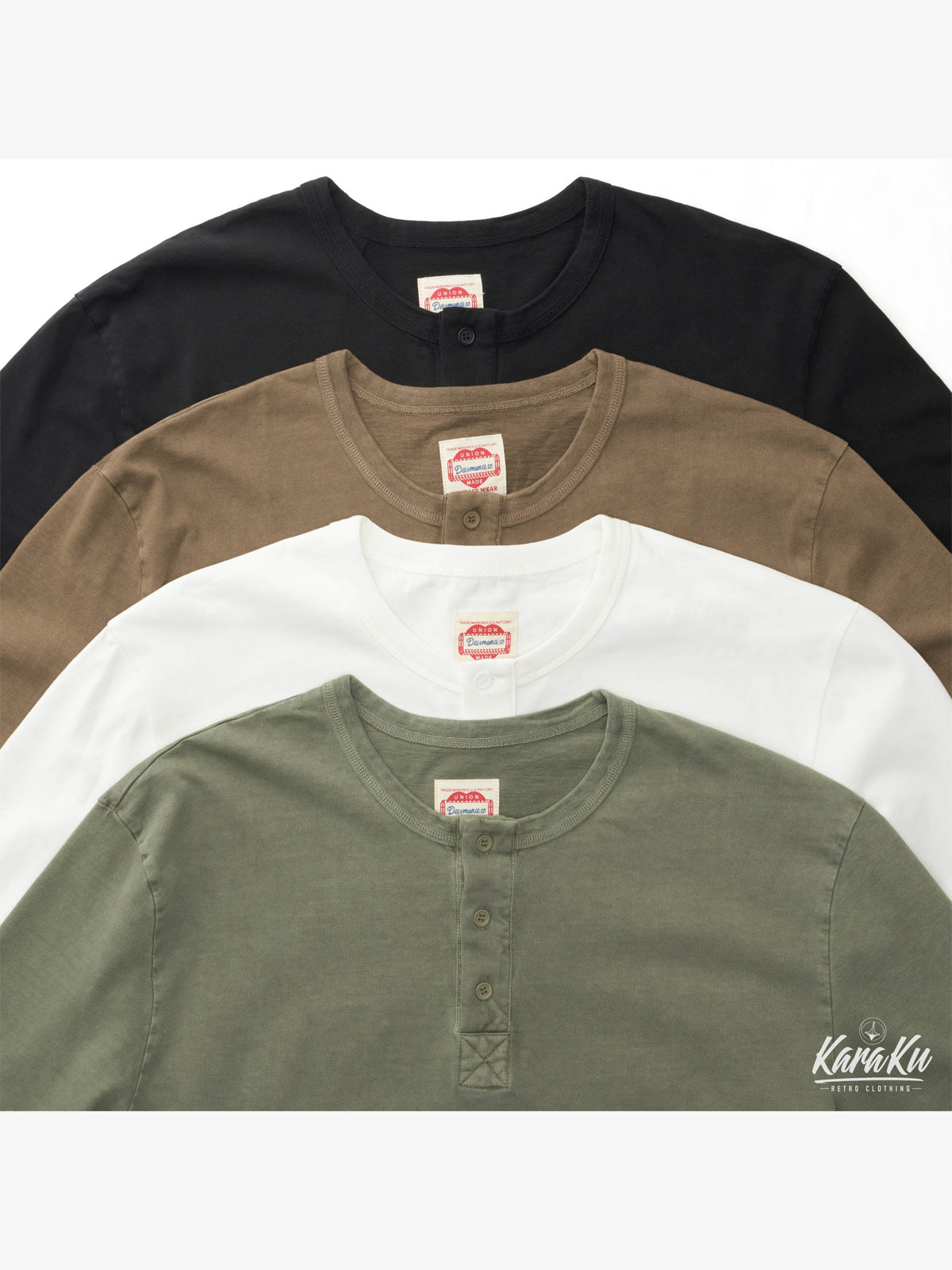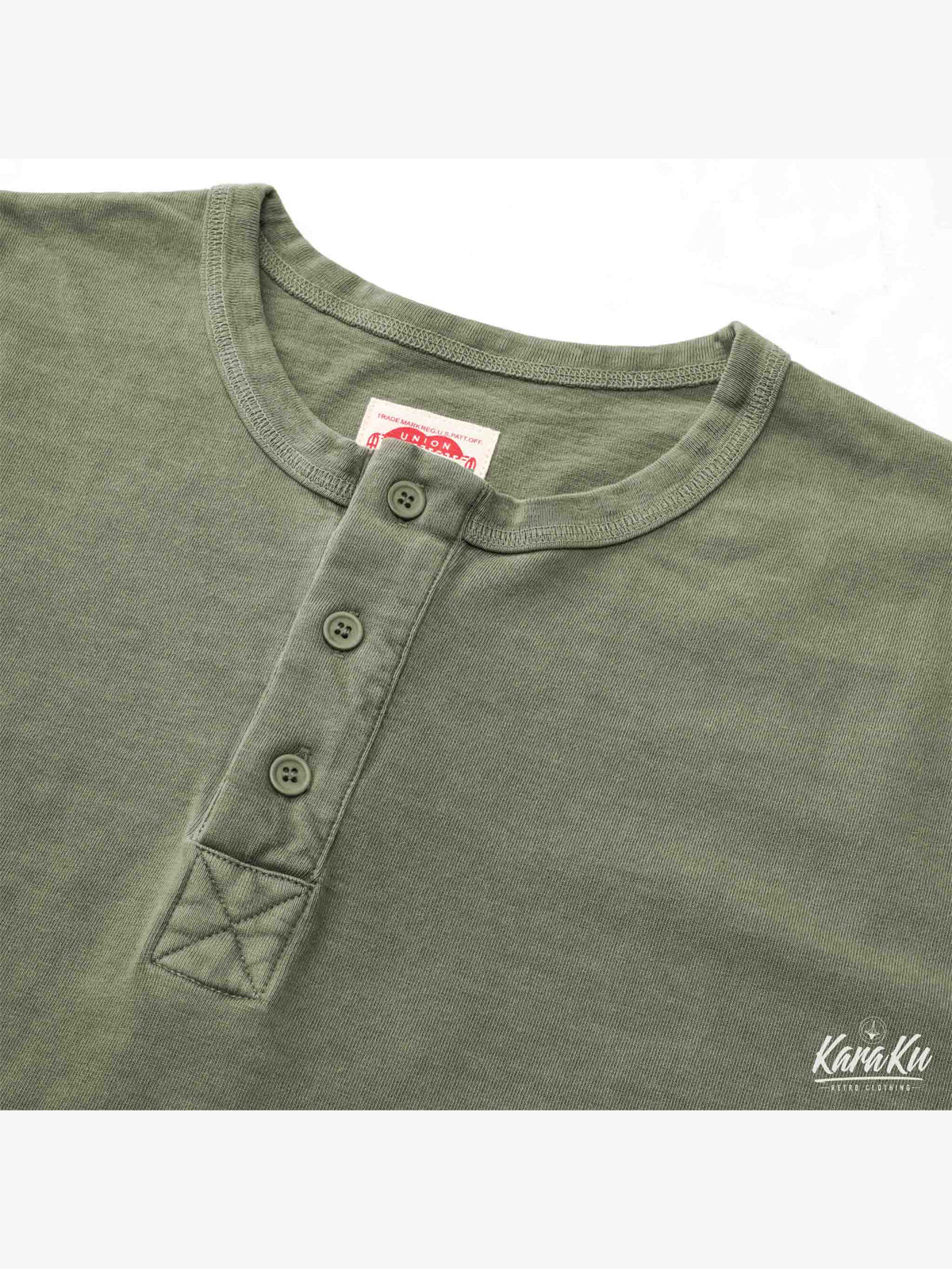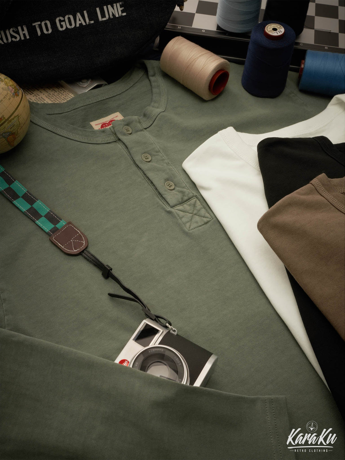 Introducing a Henley T-shirt that balances casual and refined with its adjustable button collar, offering versatile style. The washed finish gives it a vintage appeal, while the heavyweight cotton ensures durability, softness, and quick-drying comfort. Ideal for year-round wear, pair it with denim, chinos, or cargo pants for a classic American casual look or a coordinated set for a trendy style.
